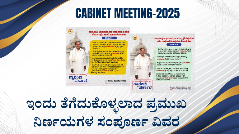 Cabinet meeting-2025: ಇಂದು ತೆಗೆದುಕೊಳ್ಳಲಾದ ಪ್ರಮುಖ ನಿರ್ಣಯಗಳ ಸಂಪೂರ್ಣ ವಿವರ ಈ ಕೆಳಗೆ ನೀಡಲಾಗಿದೆ. Cabinet Meeting-2025: ಕೊಪ್ಪಳ ಜಿಲ್ಲೆಯ ಯಲಬುರ್ಗಾ ತಾಲೂಕಿನ ಯಡೋಣಿಯಲ್ಲಿ ಮಹರ್ಷಿ ವಾಲ್ಮೀಕಿ …