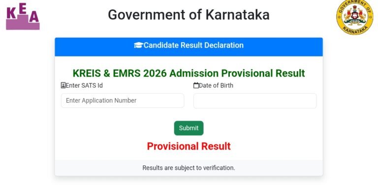 KREIS & EMRS 2026 ಪ್ರವೇಶ: ತಾತ್ಕಾಲಿಕ ಫಲಿತಾಂಶ ಪ್ರಕಟ