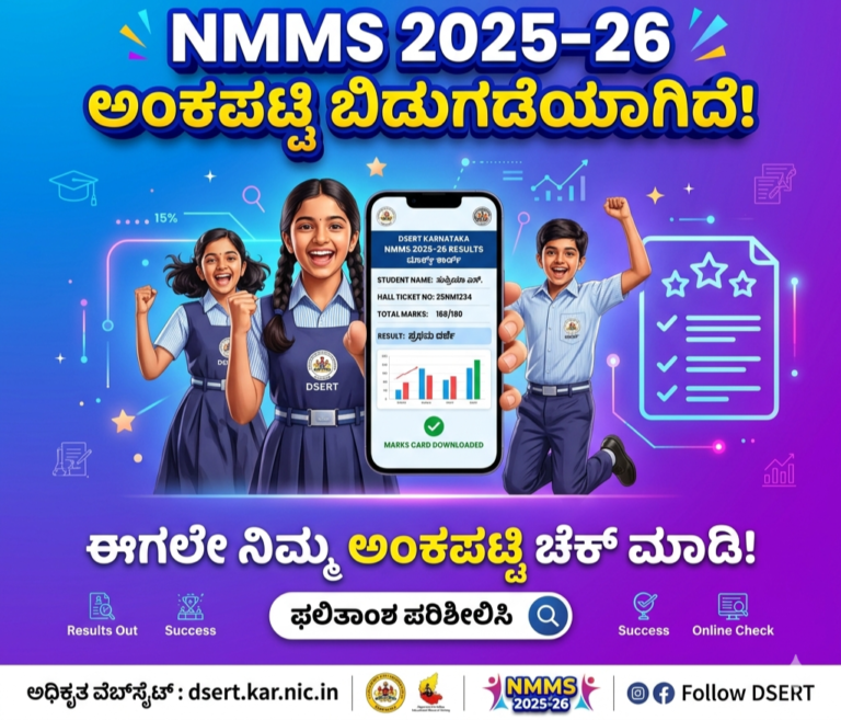 NMMS 2025-26 ಅಂಕಪಟ್ಟಿ ಪ್ರಕಟ: DSERT ವೆಬ್ಸೈಟ್ನಲ್ಲಿ ಜಿಲ್ಲಾವಾರು ಫಲಿತಾಂಶ ಲಭ್ಯ! NMMS 2025-26 ಅಂಕಪಟ್ಟಿ ಪ್ರಕಟ: DSERT ವೆಬ್ಸೈಟ್ನಲ್ಲಿ ಜಿಲ್ಲಾವಾರು ಫಲಿತಾಂಶ ಲಭ್ಯ! ಕರ್ನಾಟಕದ ವಿದ್ಯಾರ್ಥಿಗಳಿಗೆ …