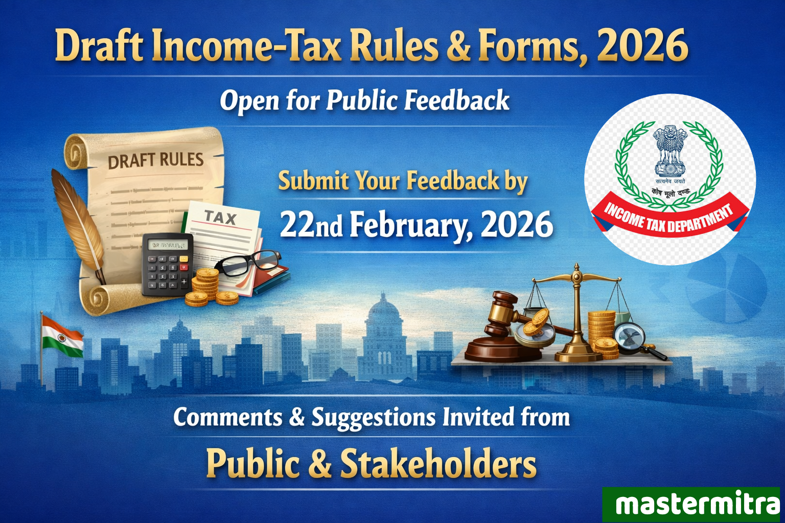 Attention Taxpayers: Draft Income-tax Rules & Forms 2026 Open for Public Comments: ಆದಾಯ ತೆರಿಗೆ ಅಧಿನಿಯಮ, 2025ಕ್ಕೆ ಸಂಬಂಧಿಸಿದ ಪ್ರಸ್ತಾವಿತ ಆದಾಯ ತೆರಿಗೆ ನಿಯಮಗಳು ಹಾಗೂ ಸಂಬಂಧಿತ ಫಾರ್ಮ್ಗಳ ಕುರಿತು ಹಿತಾಸಕ್ತಿದಾರರಿಂದ ಸಲಹೆ ಆಹ್ವಾನಿಸಲಾಗಿದೆ.