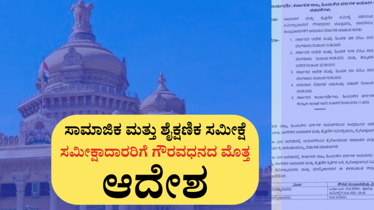 ಸಾಮಾಜಿಕ ಮತ್ತು ಶೈಕ್ಷಣಿಕ ಸಮೀಕ್ಷೆ-2025: ಸಮೀಕ್ಷಾದಾರರಿಗೆ ಗೌರವಧನ ಮೊತ್ತದ ಬಗ್ಗೆ ಆದೇಶ