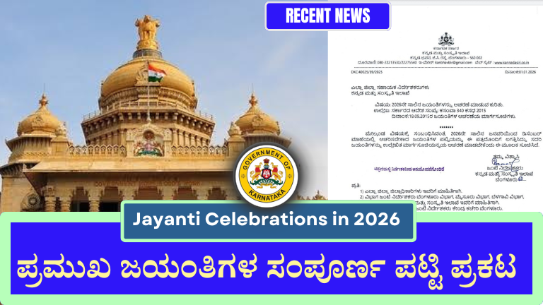 Jayanti Celebrations in 2026: ಪ್ರಮುಖ ಜಯಂತಿಗಳ ಸಂಪೂರ್ಣ ಪಟ್ಟಿ ಪ್ರಕಟ Jayanti Celebrations in 2026:ಮೇಲ್ಕಂಡ ವಿಷಯಕ್ಕೆ ಸಂಬಂಧಿಸಿದಂತೆ, 2026ನೇ ಸಾಲಿನ ಜನವರಿಯಿಂದ ಡಿಸೆಂಬರ್ ಮಾಹೆಯಲ್ಲಿ …