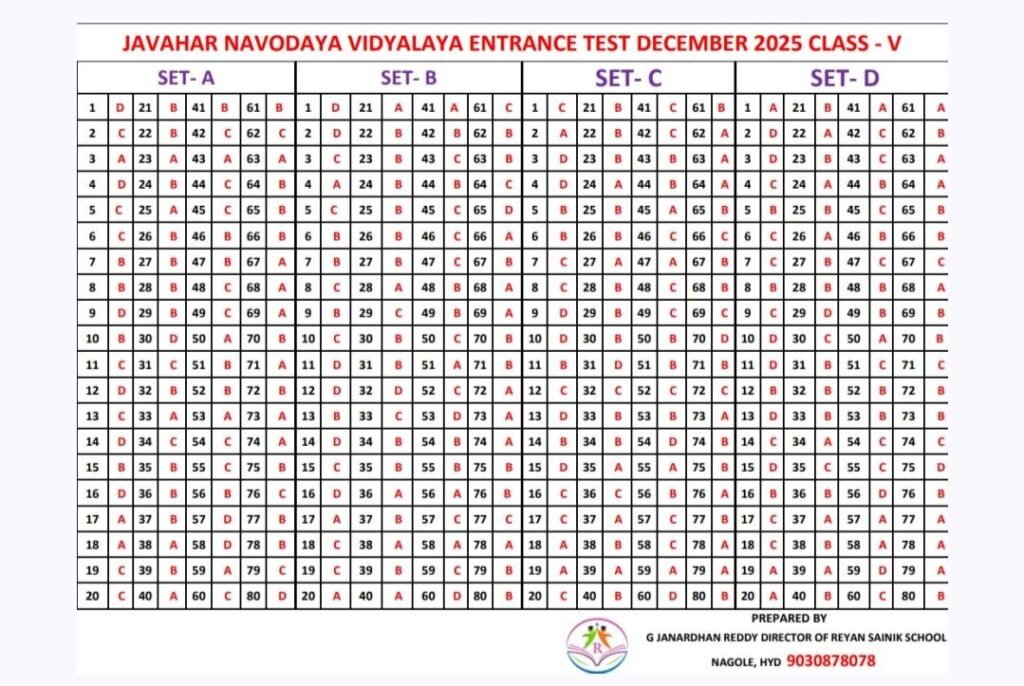 JNVST Exam 2026 Class 6 Question Paper with Model Key Answers – Download PDF.