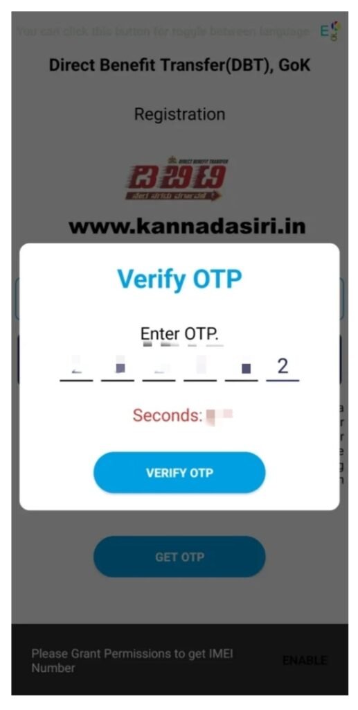 Verify OTP ಮೇಲೆ ಕ್ಲಿಕ್ ಮಾಡಿ
