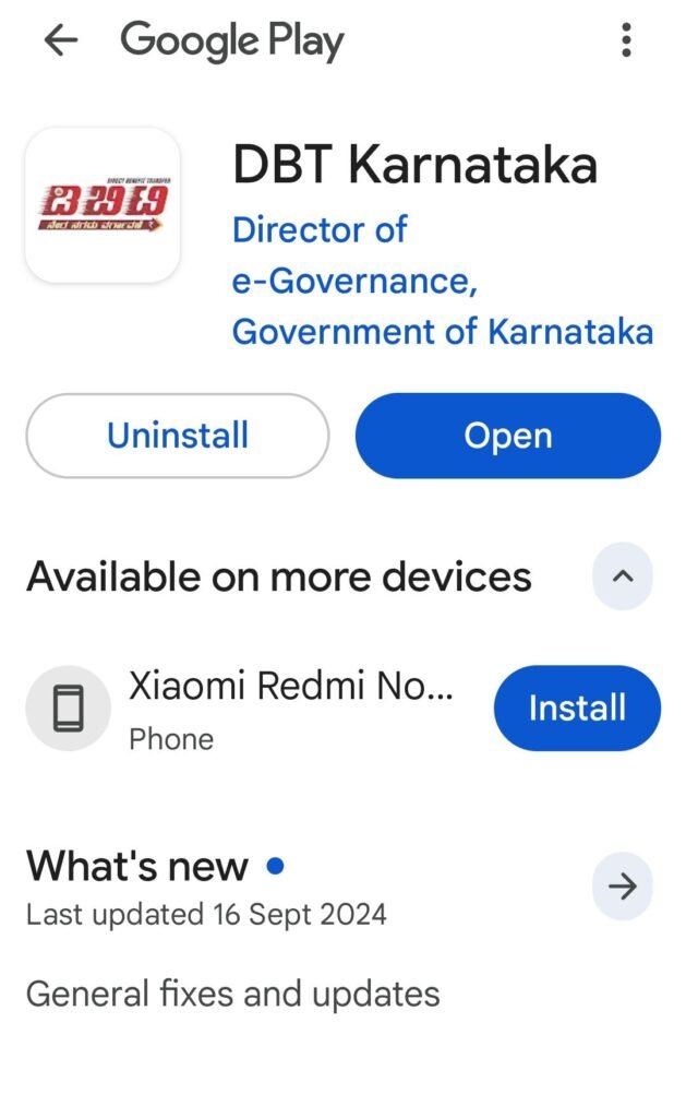 ಮೊದಲಿಗೆ ಕರ್ನಾಟಕ ಸರ್ಕಾರದ ಅಧಿಕೃತ DBT Karnataka App ಅನ್ನು ಡೌನ್ಲೋಡ್ ಮಾಡಿಕೊಳ್ಳಿ.
