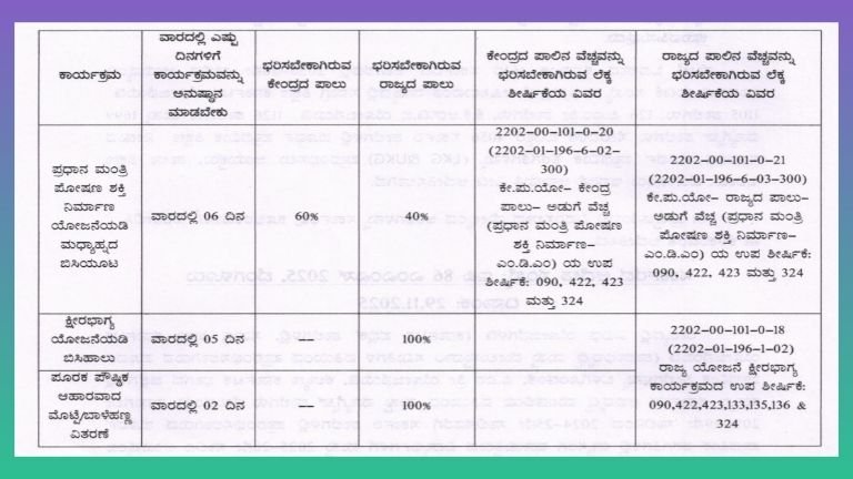 22) ಮಧ್ಯಾಹ್ನ ಉಪಹಾರ ಯೋಜನೆ ಮತ್ತು ಕ್ಷೀರಭಾಗ್ಯ ಯೋಜನೆಗಳ ಅನುಷ್ಠಾನಕ್ಕೆ ಸಂಬಂಧಿಸಿದಂತೆ ಆರ್ಥಿಕ ಮತ್ತು ಭೌತಿಕ ಗುರಿಗಳನ್ನು ಅಂದರೆ Key Performance Indicator ಗಳನ್ನು ಅವಲೋಕನ (New Decision Support System) ತಂತ್ರಾಂಶದಲ್ಲಿ ನಿಗದಿಪಡಿಸತಕ್ಕದ್ದು.