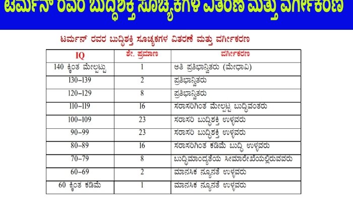 ಟರ್ಮನ್ ರವರ ಬುದ್ದಿಶಕ್ತಿ ಸೂಚ್ಯಕಗಳ ವಿತರಣೆ ಮತ್ತು ವರ್ಗೀಕರಣ: